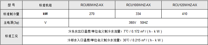日立螺桿式水冷冷水機組AX系列,制冷量從270 kW~410kW。機組特點: