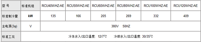 日立冷水機組A系列,制冷量從135kW~818kW(38RT~233RT), 含 40HP~240HP共11個規格。