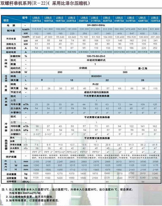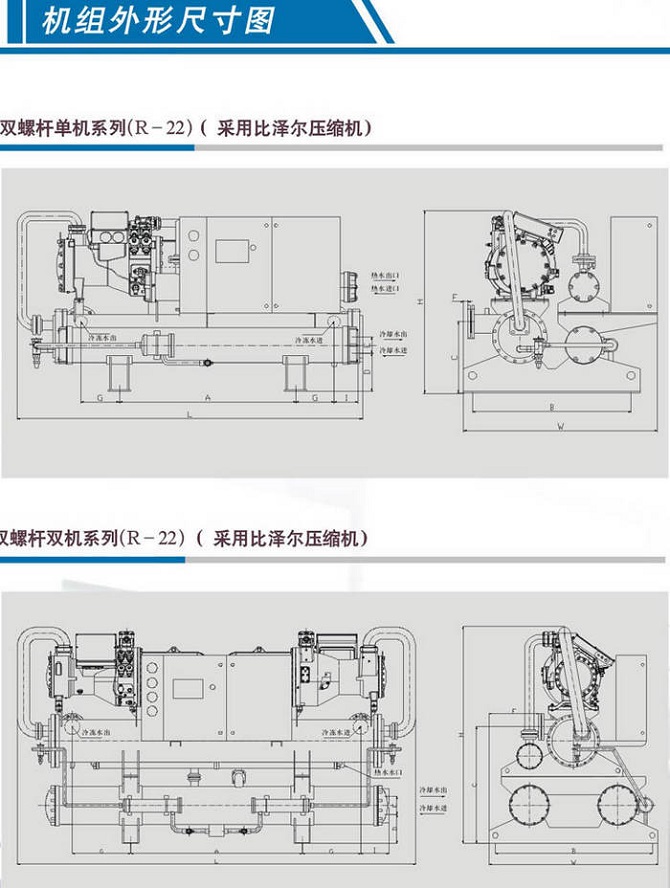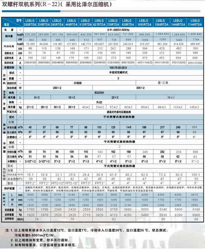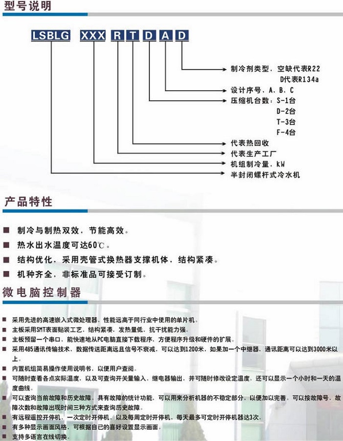 (1)機組壓縮機選用名牌半封閉螺桿式壓縮機及電控元件,配備換熱高效優(yōu)質(zhì)銅管制作的冷凝器及蒸發(fā)器;