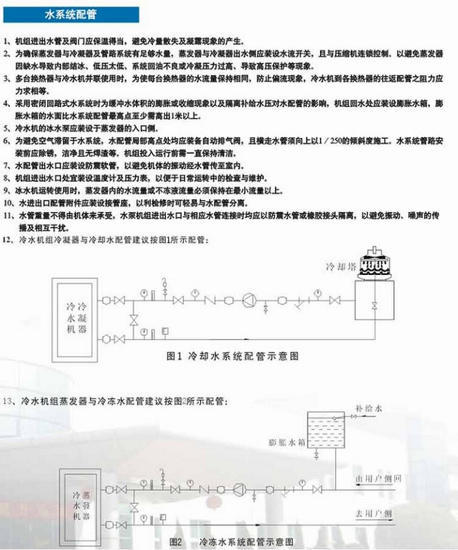 水冷螺桿式冷水機組也是冷水機組的一種,由于它的主要構成部件使用了螺桿式壓縮機,所以名稱可稱謂水冷螺桿式冷水機組。它的冷凍出水溫度范圍為3℃~20℃,可廣泛應用于塑膠,電鍍,電子,化工,制藥,印刷,食品加工等各種工業(yè)冷凍制程需使用冷凍水的領域,或大型商場,酒店,工廠,醫(yī)院等各種中央空調(diào)工程中需使用冷凍水集中供冷的領域。
