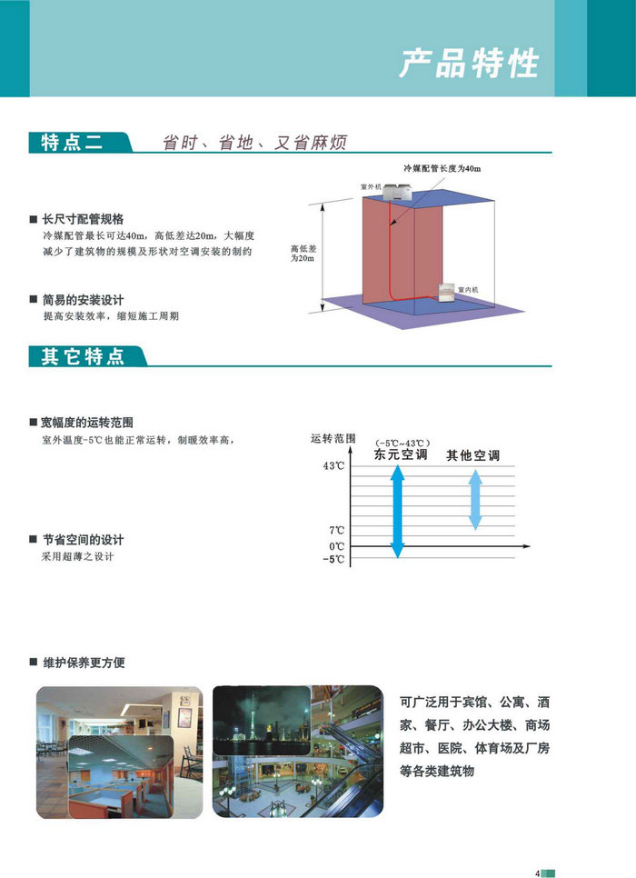 長尺寸配管規格(長40m,高低差20m),大幅度減少建筑物制約