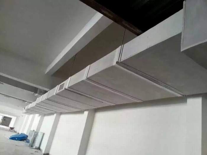 風管系統安裝前,施工人員要確認風管、排風口等設備的標準高度是否與圖紙中相符,檢查預留的空調孔洞、預埋位置、尺寸是否合適,然后,現場確認加工支架、風管等部件是否齊全、經過除銹刷漆處理、規格符合標準。送風口和回風口尺寸要特別注意回風口尺寸,不能小于規定尺寸,否則容易引起噪音 超薄風管式室內機風機是外置的,可以接短的回風管,可以不接回風風管,但必須有回風口。
