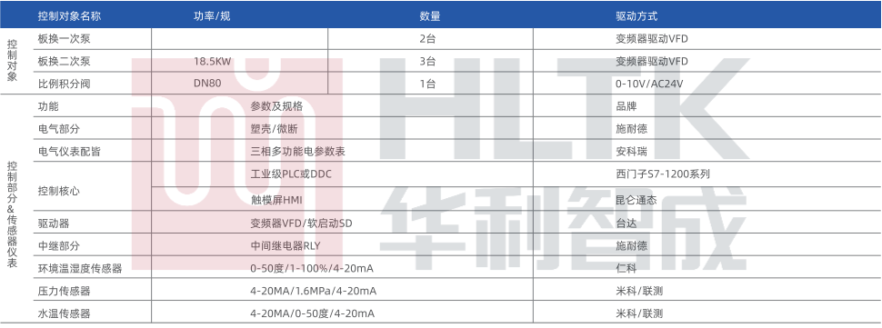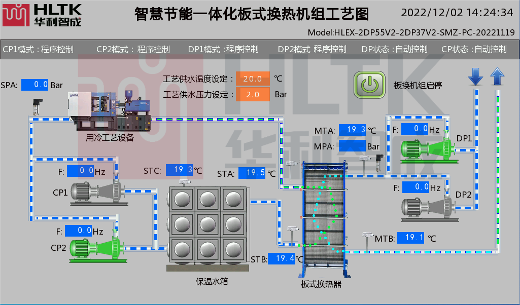 制水泵的頻率控制流量和溫度,從而實現板式換熱器的二次側熱流體的精準溫度自動控制。