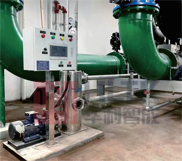 通過傳感器對冷卻水水質(zhì)進(jìn)行實(shí)時(shí)監(jiān)測,并根據(jù)預(yù)設(shè)的程序和算法,自動(dòng)調(diào) 節(jié)化學(xué)藥劑的投加量,以達(dá)到最佳的處理效果。同時(shí),該