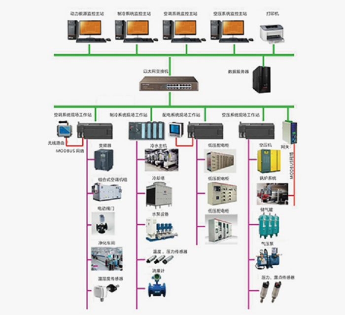 動力能源集控系統是整個工業廠房動力能源的監控管理中心,應要應用于制藥廠、煙廠、電子潔凈廠房等區域;其可實現管理與控制數據一體化,各分、子系統的高度集成,無人值守全自動控制,能源優化組合等功能;其監控的子系統可包含以下系統:生活熱水子系統、變配電子系統、空壓(真壓)子系統、制冷子系統、空調子系統、熱力子系統、給排水子系統、天然氣子系統、工廠工藝冷卻水子系統、鍋爐子系統等。